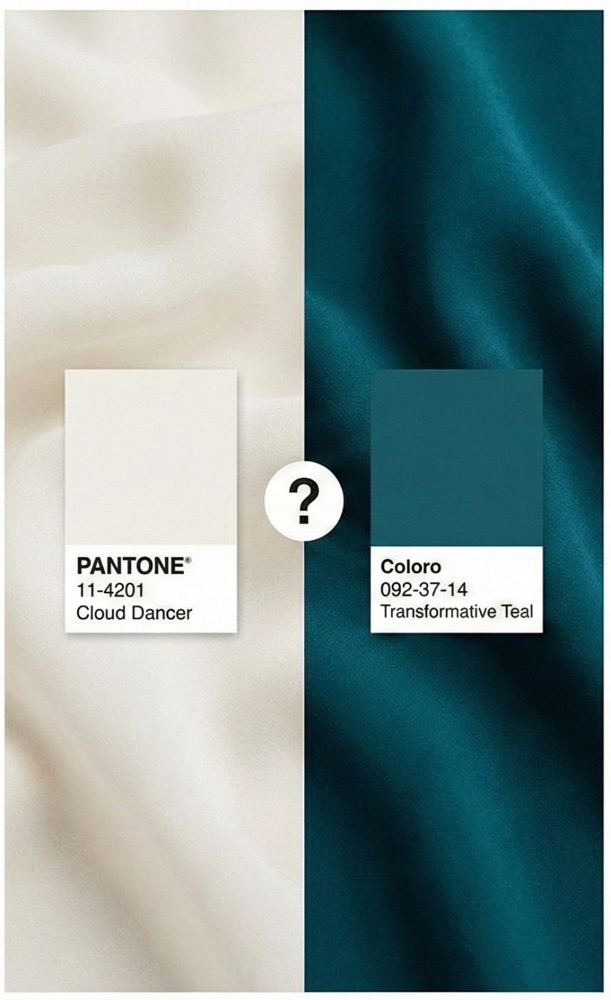Pantone může říct, že barvou roku je Cloud Dancer. A Coloro může říct Transformative Teal.